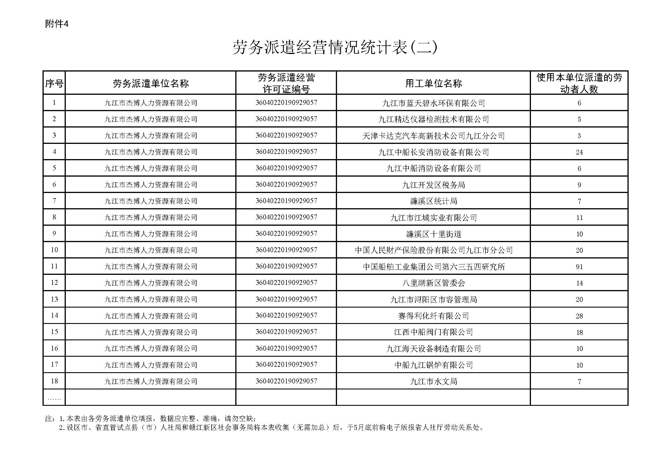2019年勞務(wù)派遣經(jīng)營情況公示 日期:2020-03-26 16:58:59 / 人氣:1753 作者:admin ←上一篇關(guān)于開展免費企業(yè)人力資源管理師培訓(xùn)班的通知下一篇→向陽街道辦事處2020年面向社會公開 招聘社區(qū)工作人員公告 新聞資訊 News 九江市杰博人力資源有限公司安徽...04-01 江西省人社廳召開人力資源服務(wù)工...02-26 九江市杰博人力資源有限公司喜獲...01-04 德安縣博河物業(yè)有限公司招聘公告11-24 案例展示 Case 通訊行業(yè)12-19 金融行業(yè)12-19 保險行業(yè)12-19 制造行業(yè)12-19