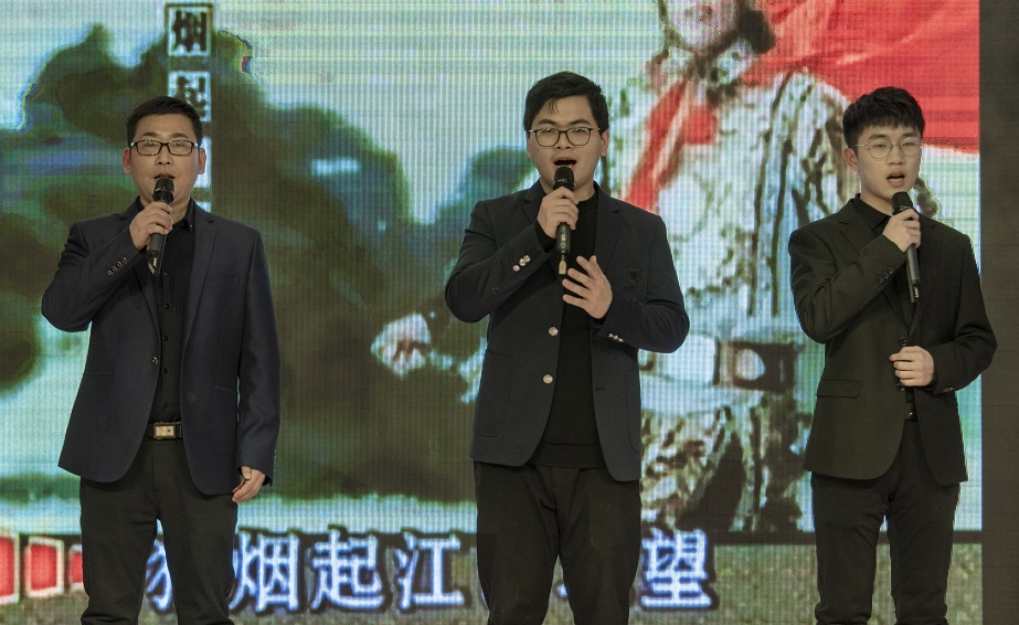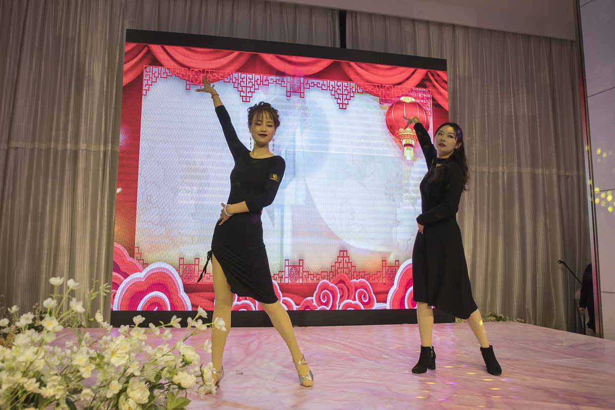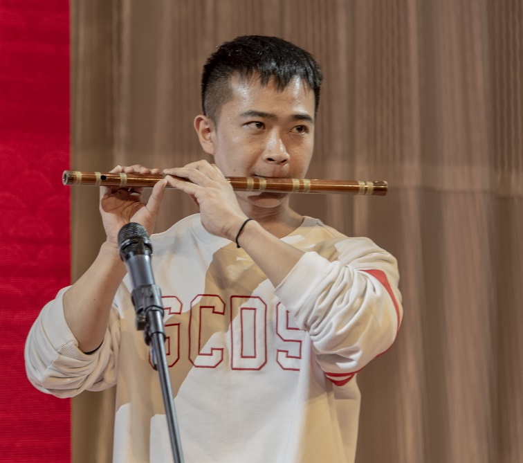 致辭結(jié)束,文藝表演正式開始。第一個節(jié)目笛子獨奏《紫色的激情》,演奏者是譚教授學(xué)校的同事,他6歲開始學(xué)習(xí)笛子吹奏,英國海歸碩士畢業(yè),妥妥的專業(yè)人士;樂曲曲調(diào)激越、演奏技巧嫻熟,博得了大家陣陣掌聲,頓時把年會的熱烈氣氛烘托了出來。