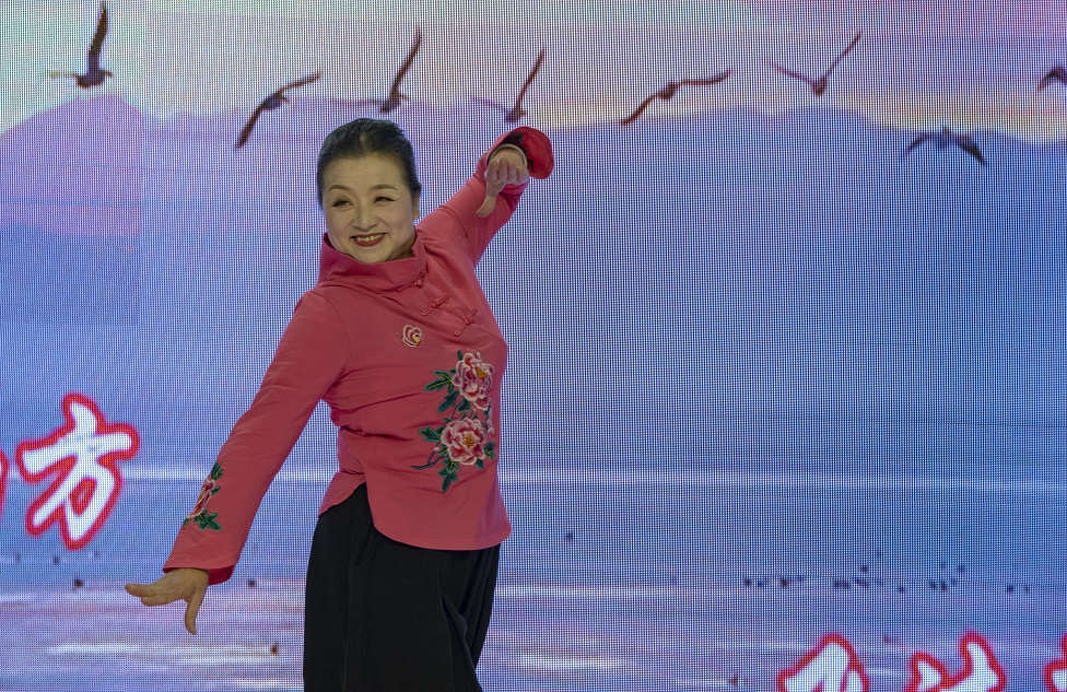 ”天蒼茫,雁何往---心中是北方家鄉(xiāng)“,把人們帶進(jìn)了浩瀚遼遠(yuǎn)的蒙古草原,歌伴舞《鴻雁》是公司周總監(jiān)和夫人共同表演,女舞者通過蒙古舞壓腕、提腕、甩手、抖肩、拉背、拖步、蹭步等舞蹈動作,內(nèi)力充盈,真氣滿滿,完美的展示了鴻雁不畏艱險、奮力向前的矯健雄姿,也贏得了大家的一片喝彩和叫好。