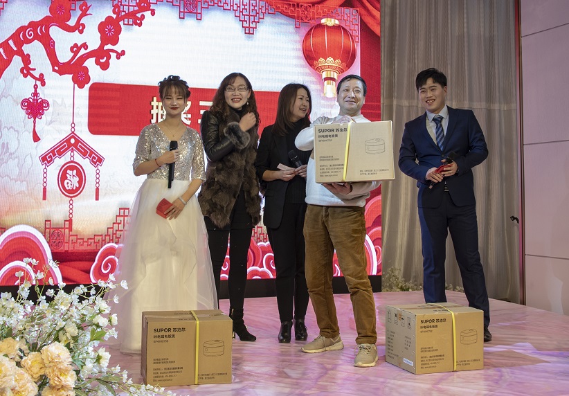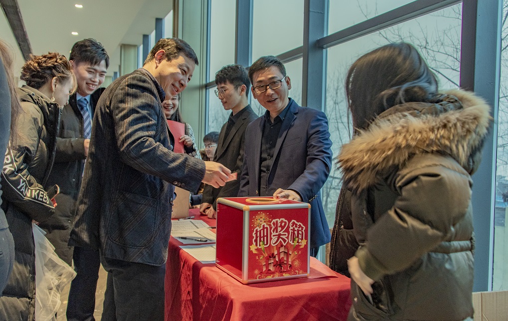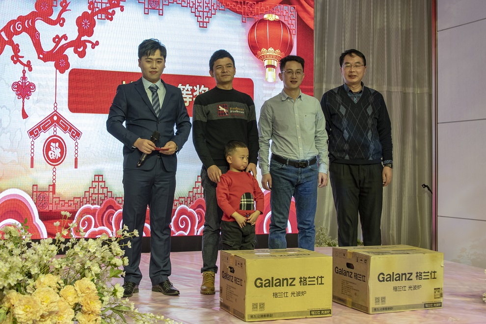 年會還安排了抽獎環(huán)節(jié),設(shè)置了三等獎、二等獎、一等獎、特等獎,獎品有電飯煲、微波爐、小平板和華為手機(jī)。今年年會中獎?wù)呒扔泄締T工,更有客戶單位來賓。張老師說中獎面多人廣,覆蓋了企業(yè)單位代表、同行業(yè)單位負(fù)責(zé)人、公司員工等。這似乎是體現(xiàn)了“成果共享、利益均沾”的效果。張老師抽出的特等獎是一部華為手機(jī),被公司湯會計獲得,這當(dāng)是“財聚杰博”的興旺之運。
