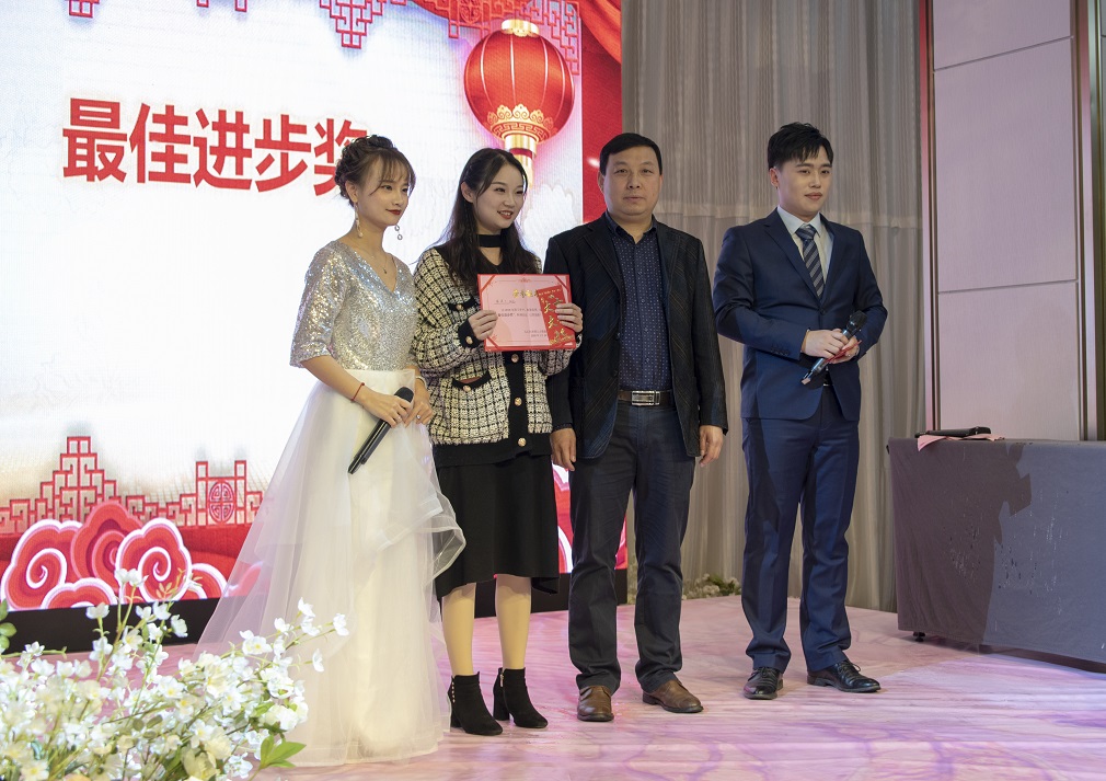 在文藝表演節(jié)目中間穿插了優(yōu)秀員工頒獎環(huán)節(jié),年會現(xiàn)場,公司總經(jīng)理高輝給三名優(yōu)秀員工頒發(fā)了榮譽(yù)證書和獎金,褒獎先進(jìn)、鞭策后進(jìn)是公司管理的常態(tài)化運作,望獲獎員工從零起步,再接再厲;